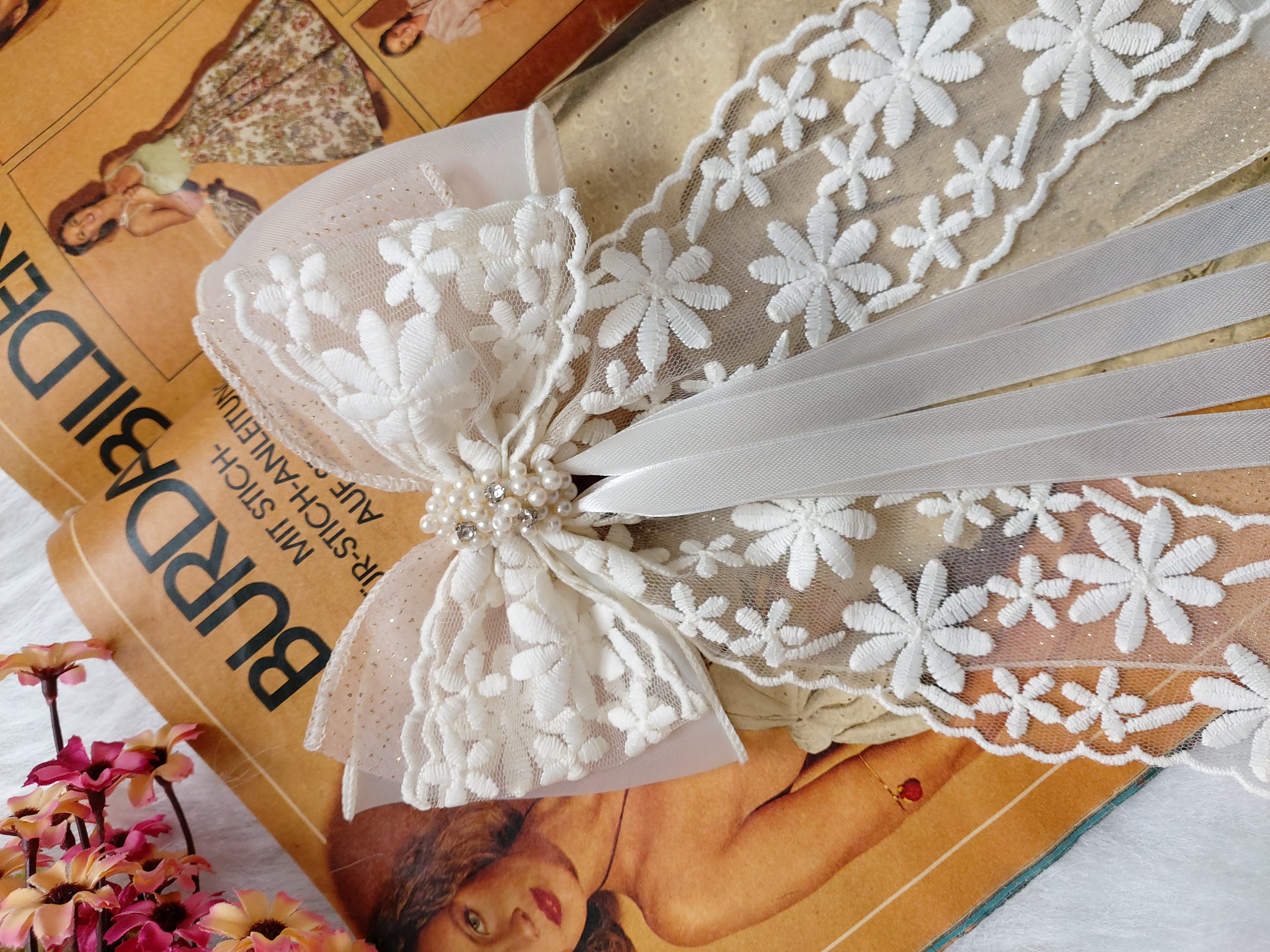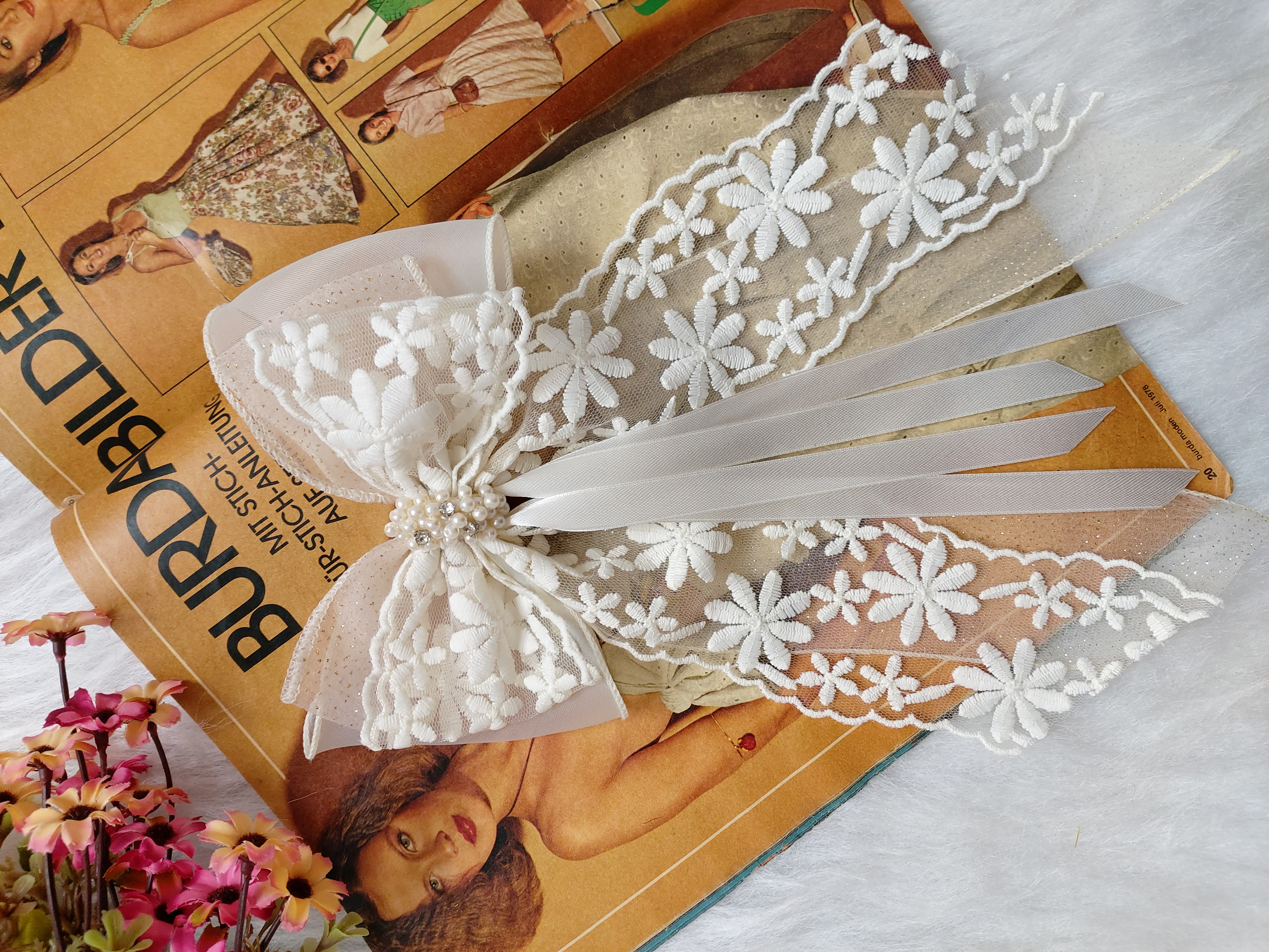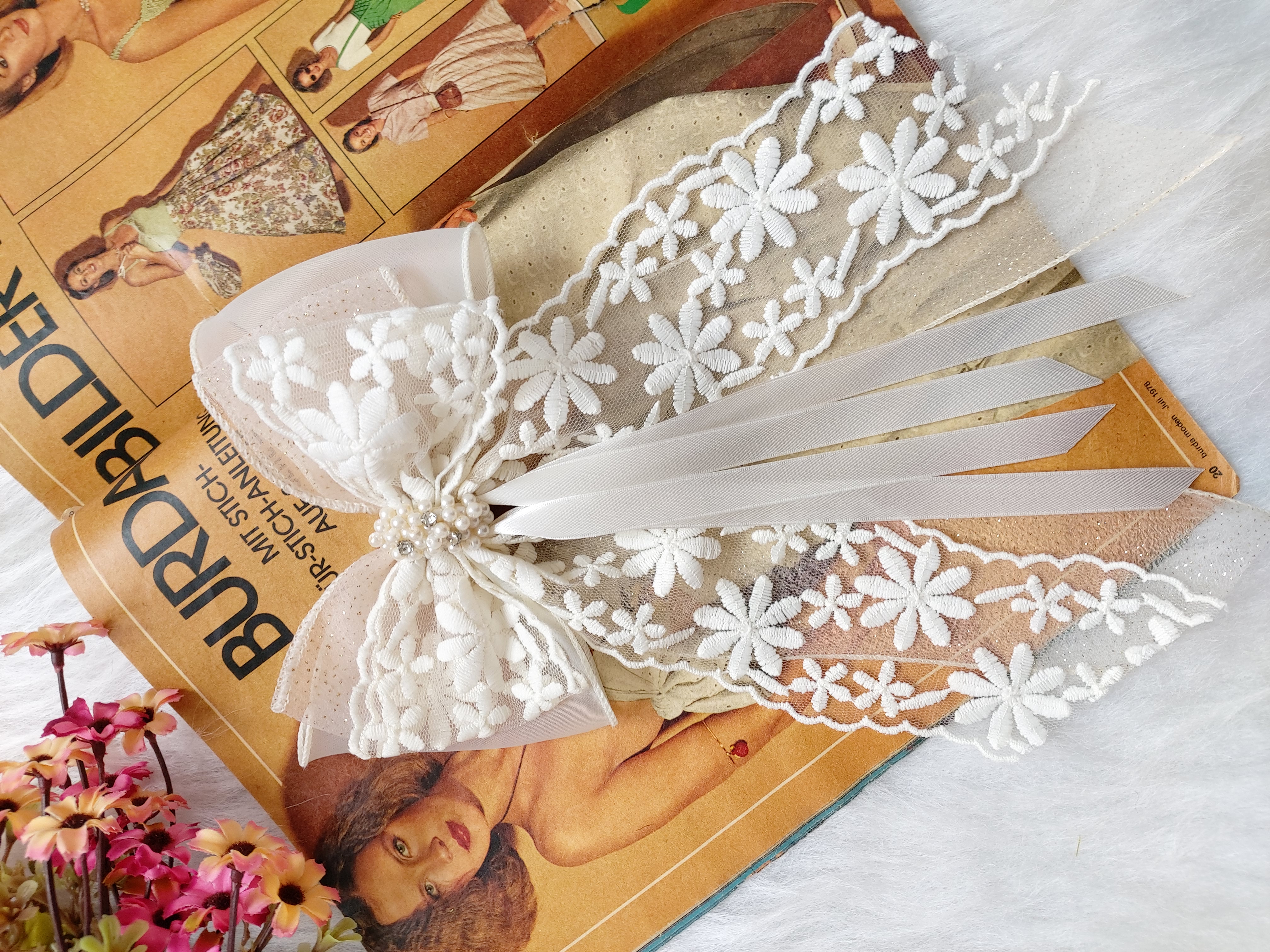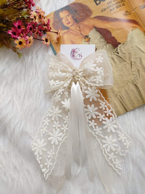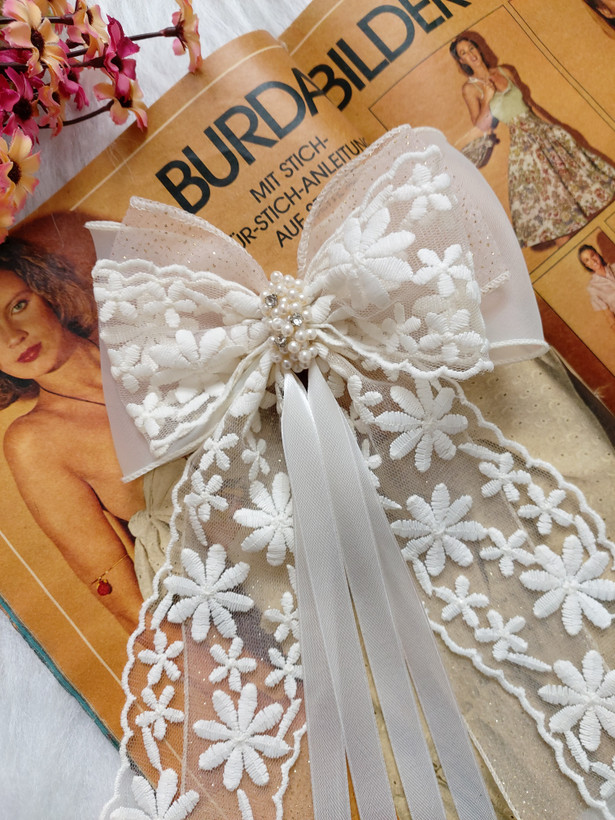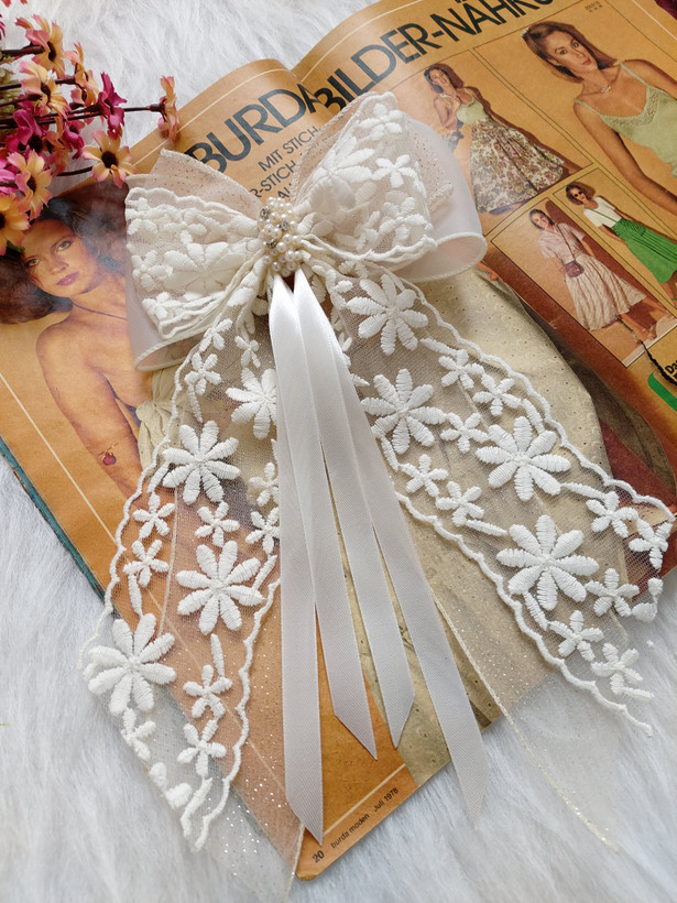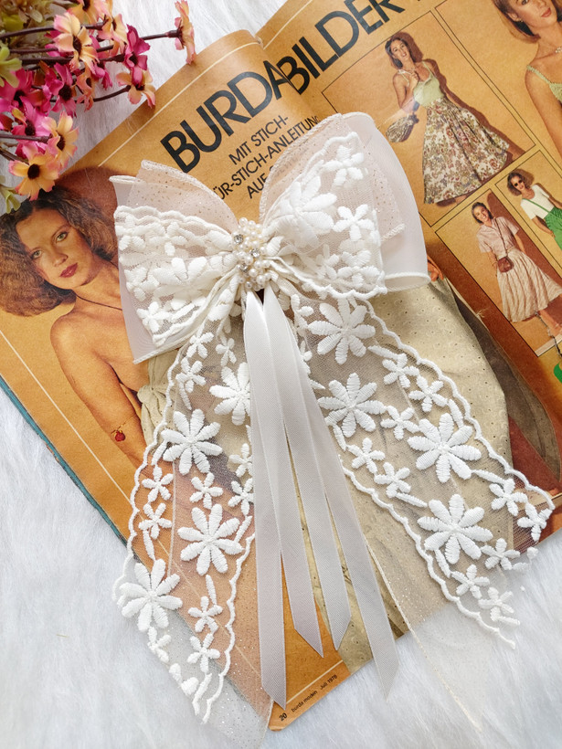 گیره ای ک پشت مدل گلرخ کار شده گیره انبری ۱۰ سانت هست.طول پاپیون حدود ۱۵ سانت و طول دنباله ها حدود ۲۵ سانت هست.